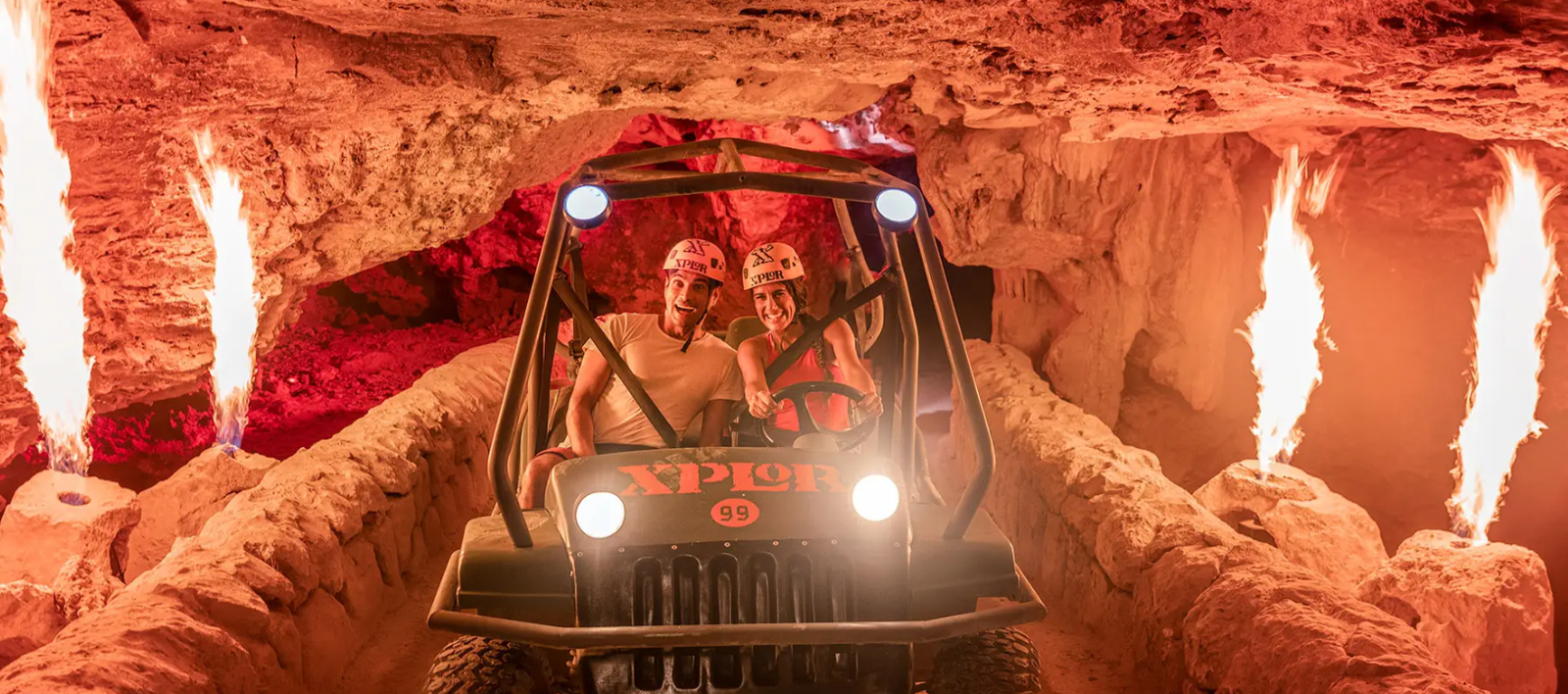 Dare to live the adventure at night in Xplor Fuego that will ignite your adrenaline. Live the thrill of rafting down our Toboganxote, a 5-in-1 waterslide that ends in a wave pool.